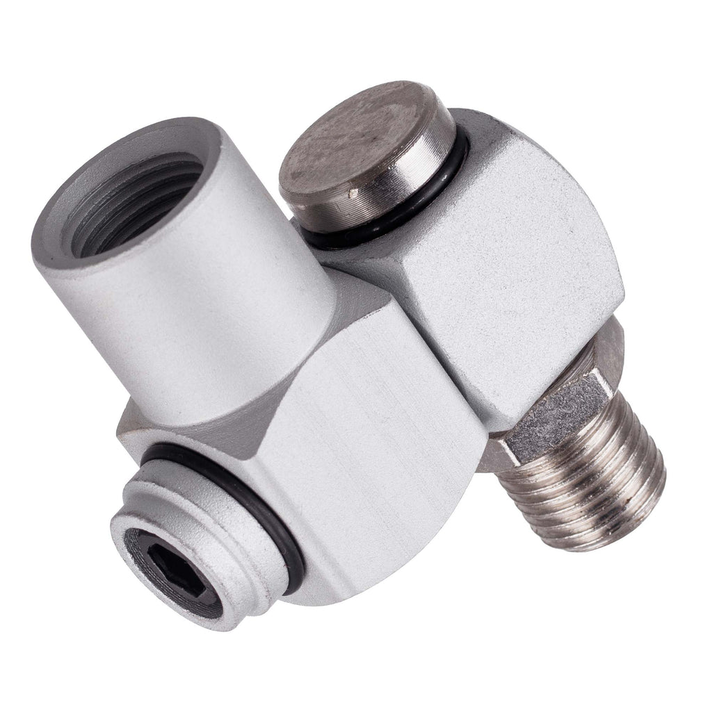 Conector rotativ conceput pentru scule pneumatice. Dupa utilizarea articulatiei prezentate, mobilitatea in timpul lucrului este semnificativ crescuta. Datorita designului sau rotativ, conectorul impiedica incurcarea si rasucirea furtunului, chiar si atunci cand se lucreaza la diferite inaltimi.
