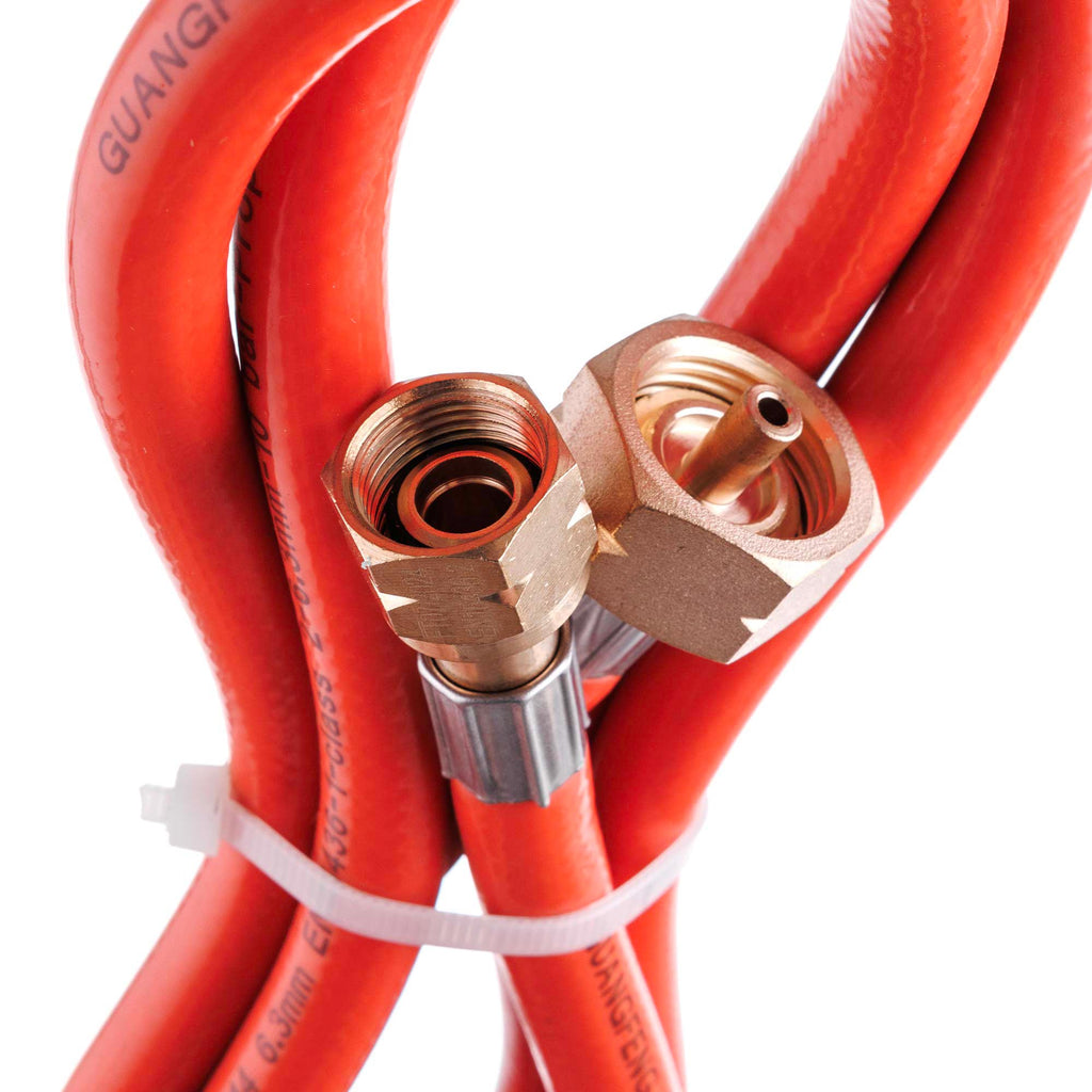 ▶️ Arzatorul este echipat cu un furtun de alimentare, potrivit pentru conectarea la o butelie de gaz de 11 kg. Cu adaptorul adecvat, arzatorul poate fi utilizat si cu o butelie mica de gaz pentru camping.