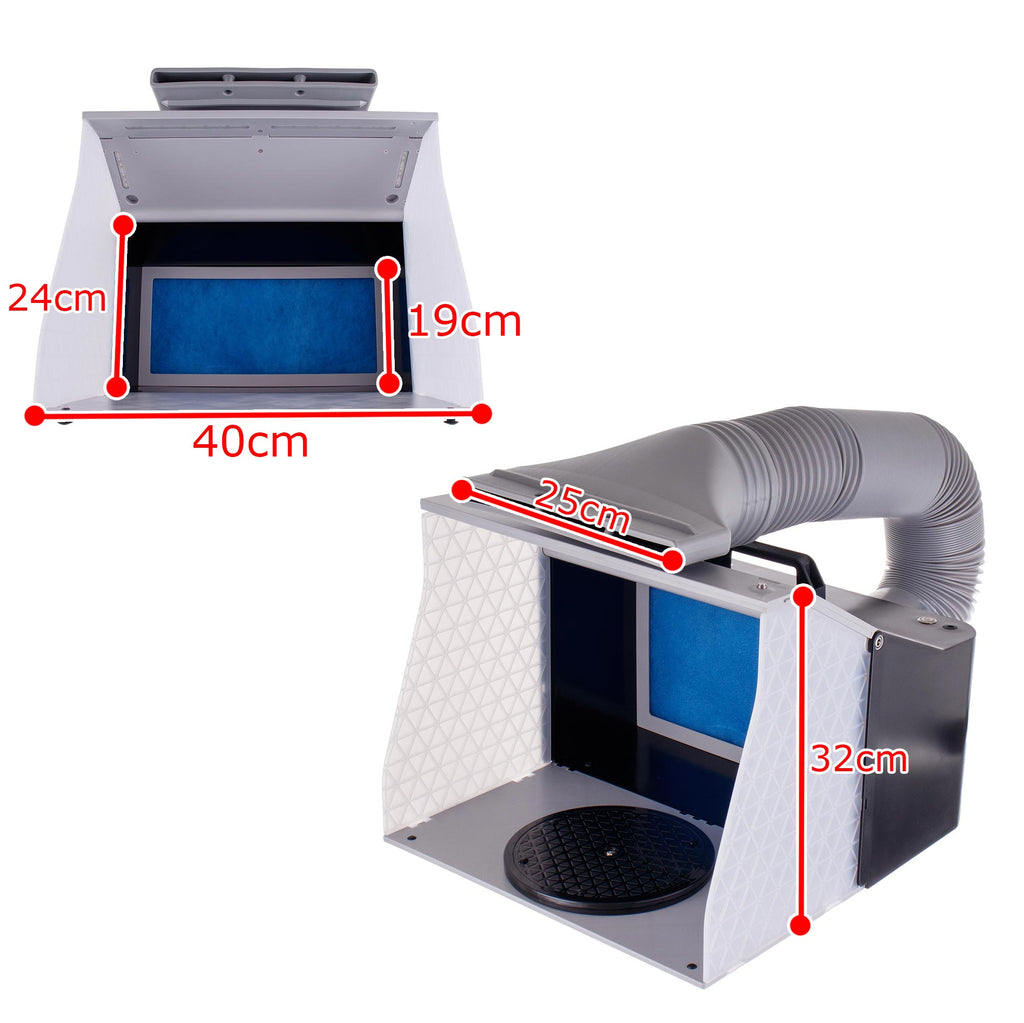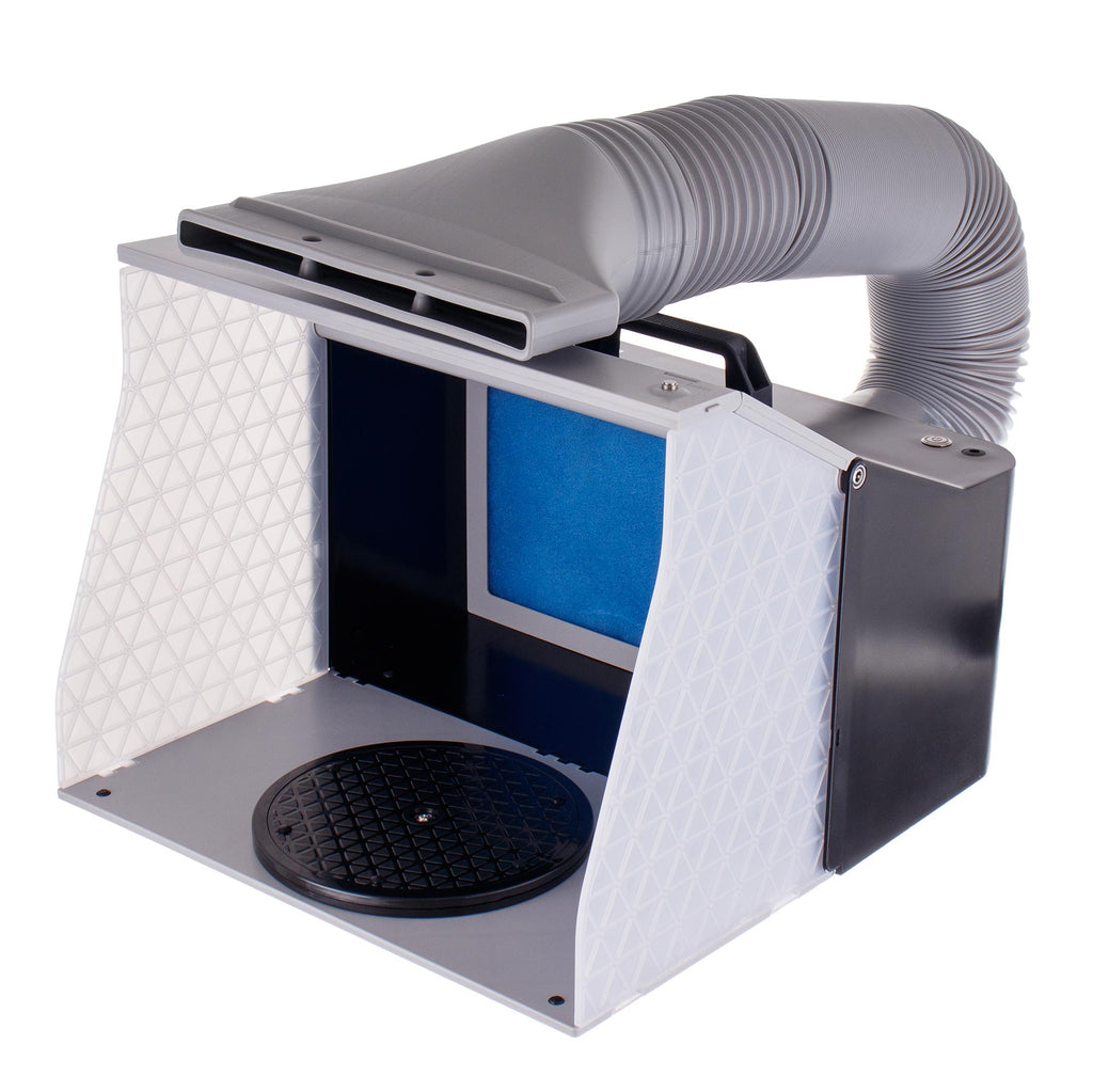 Cabina de pulverizare este o solutie compacta, eficienta si mobila pentru pulverizarea in conditii de siguranta. Indispensabila pentru modelisti, artisti, amatori si pasionati de bricolaj. Protejeaza utilizatorul impotriva inhalarii vaporilor nocivi si reduce raspandirea aerosolilor de vopsea, asigurand conditii de lucru confortabile acasa sau in atelier.