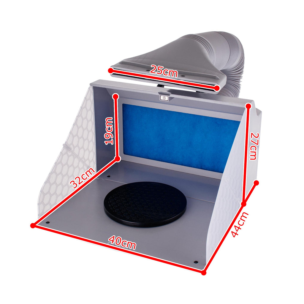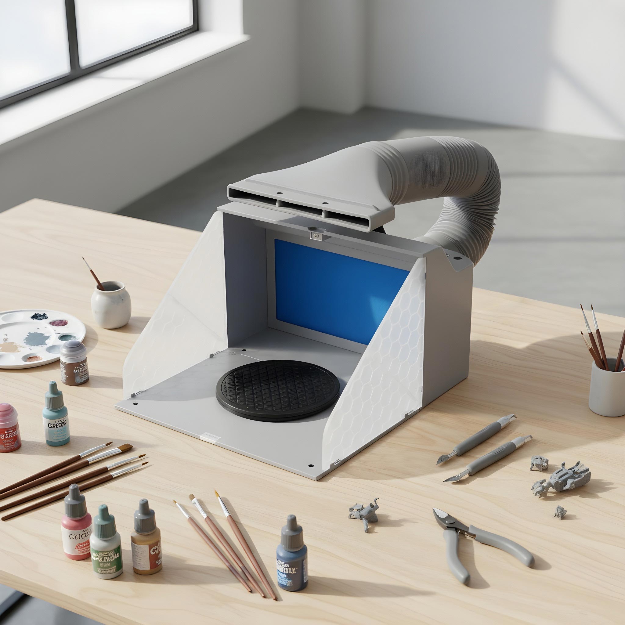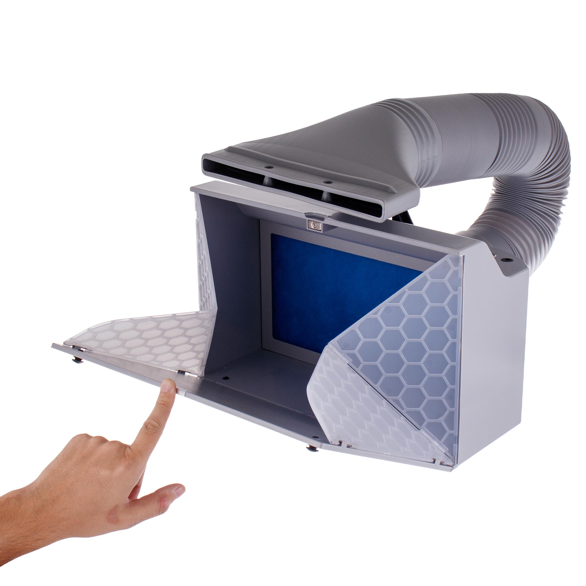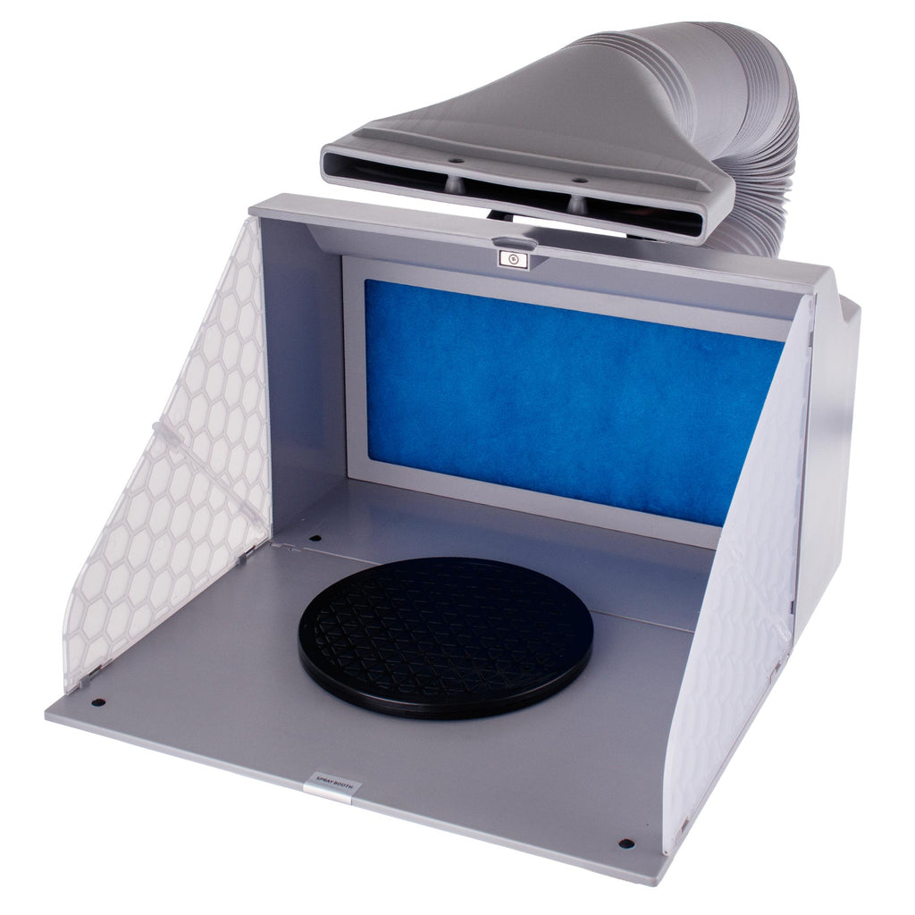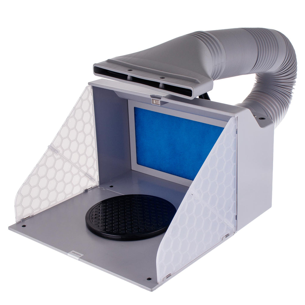 Cabina de pulverizare este o solutie compacta, eficienta si mobila pentru vopsirea sigura cu aerograf. Indispensabila pentru modelisti, artisti, amatori si pasionati de bricolaj. Protejeaza utilizatorul impotriva inhalarii vaporilor nocivi si reduce raspandirea cetei de vopsea, asigurand conditii de lucru confortabile acasa sau in atelier.