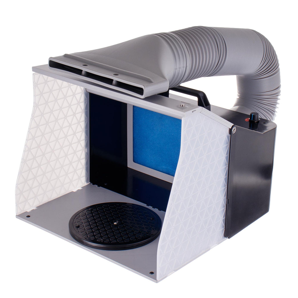 Cabina de pulverizare este o solutie compacta, eficienta si mobila pentru pulverizarea in conditii de siguranta. Indispensabila pentru modelisti, artisti, amatori si pasionati de bricolaj. Protejeaza utilizatorul impotriva inhalarii vaporilor nocivi si reduce raspandirea aerosolilor de vopsea, asigurand conditii de lucru confortabile acasa sau in atelier.
