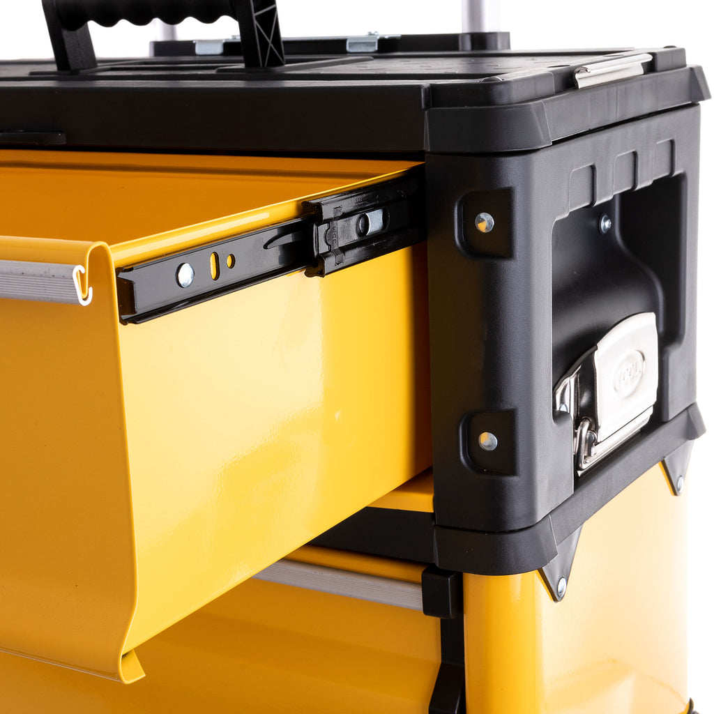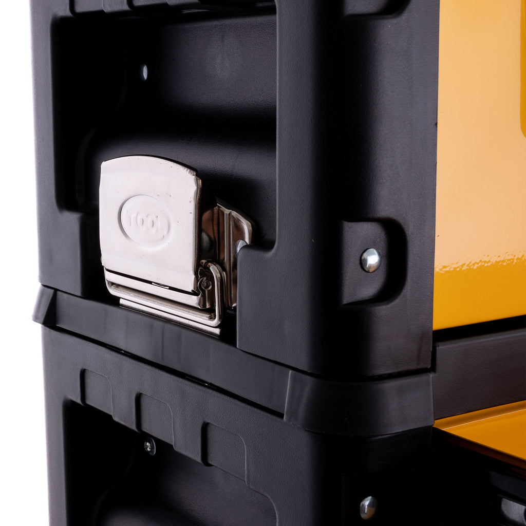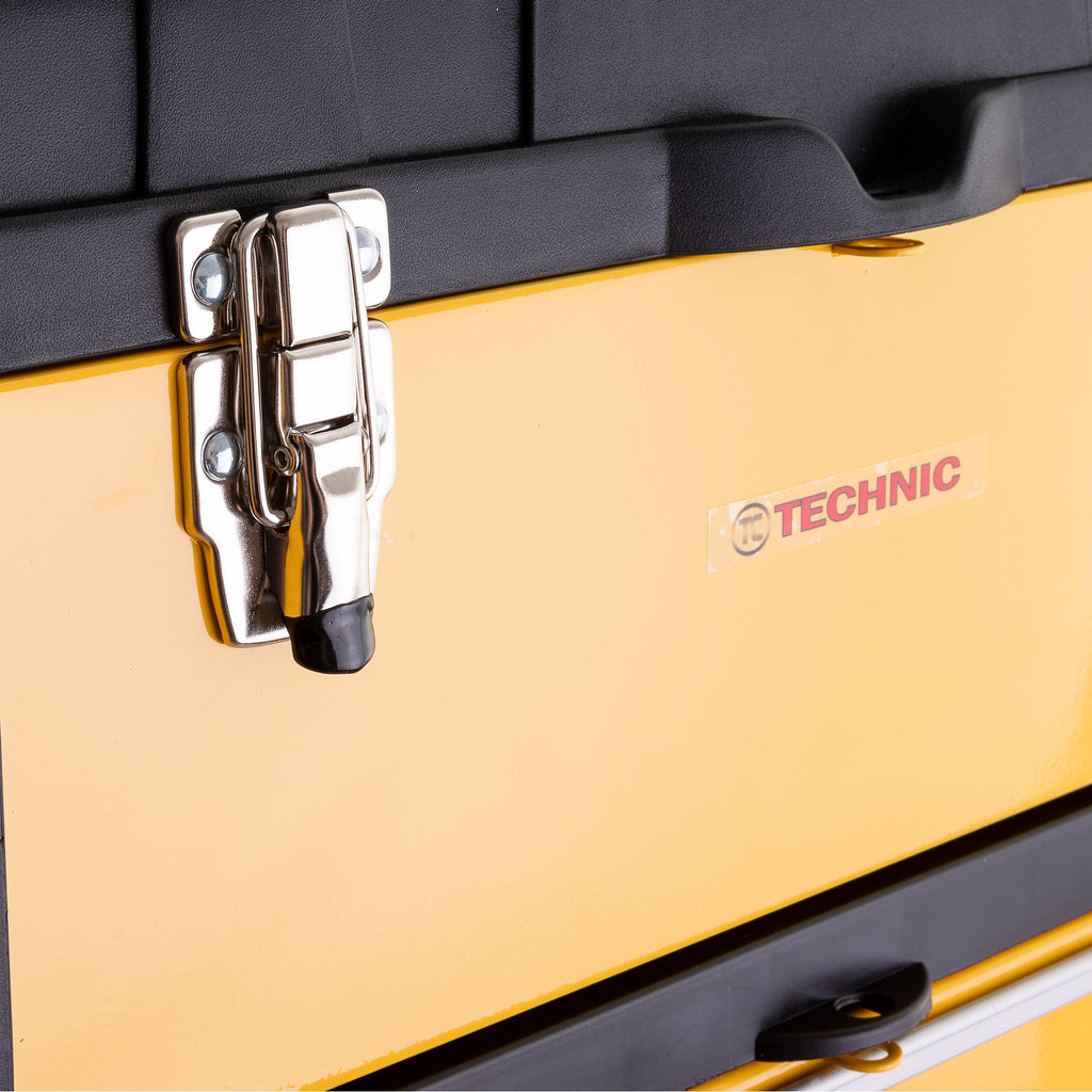 Fabricat din tabla de otel si plastic ABS rezistent. Ideal pentru depozitarea si transportul uneltelor in atelier, garaj sau santier.