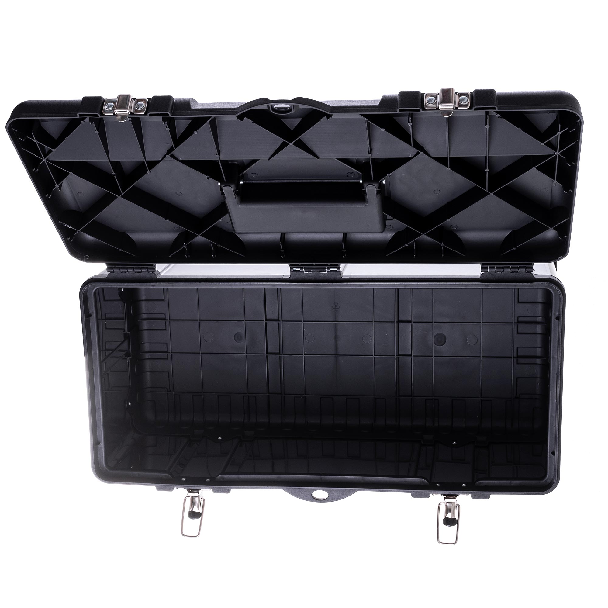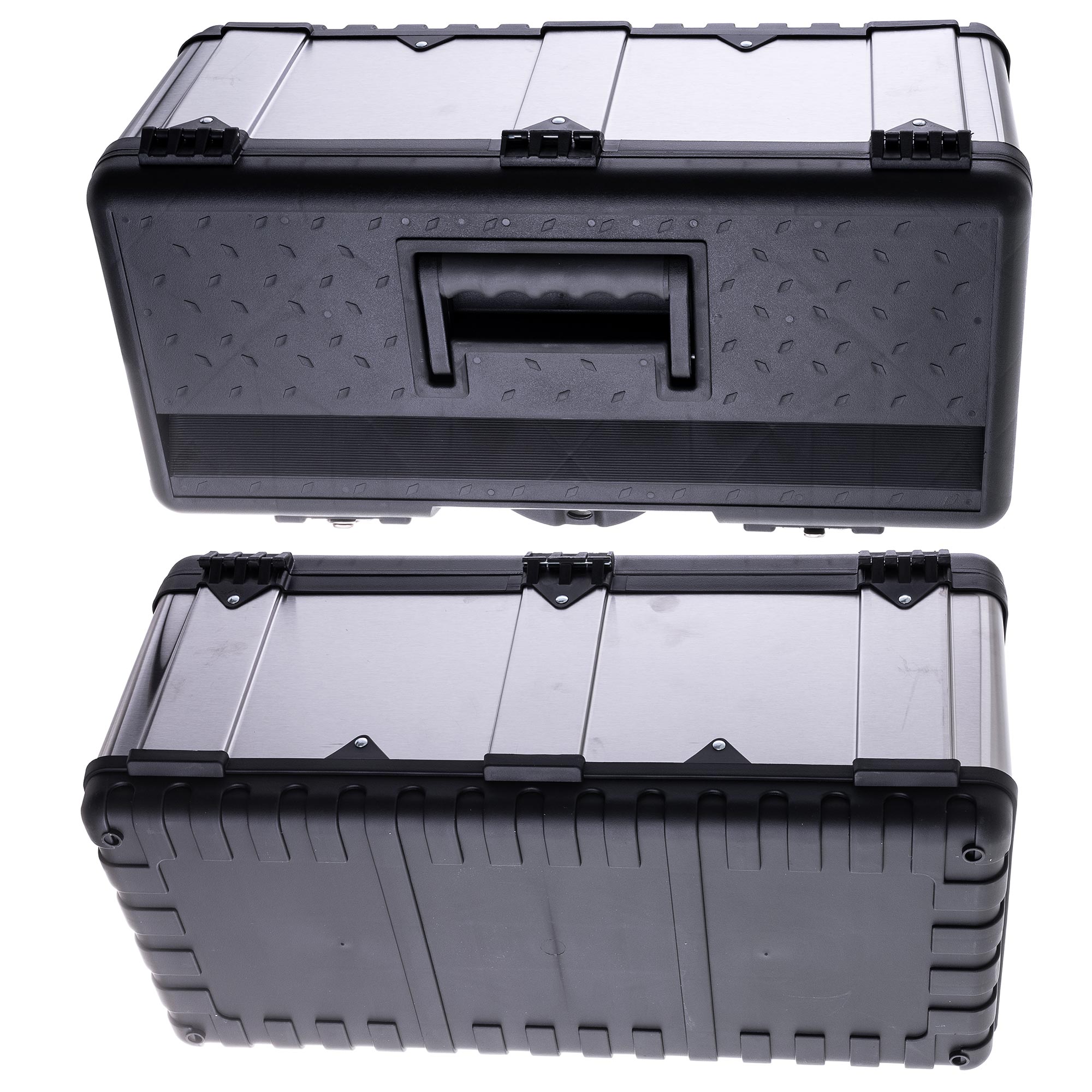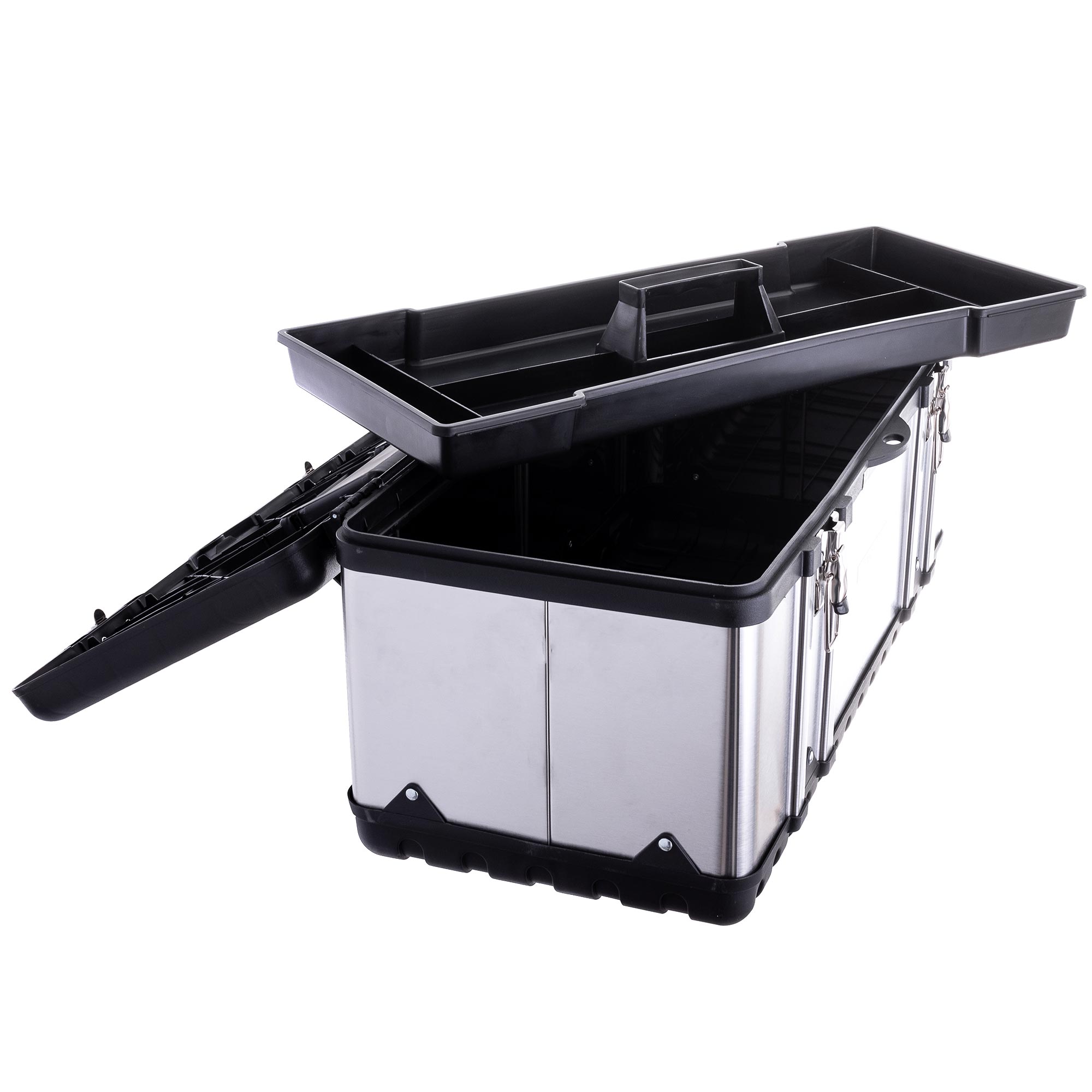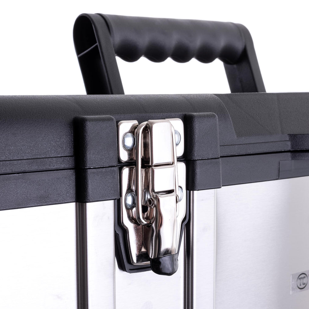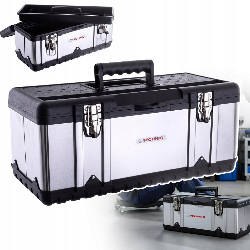 Cutie de scule de înaltă calitate , fabricată din oțel inoxidabil și plastic ABS rezistent, concepută pentru depozitarea în siguranță a sculelor.