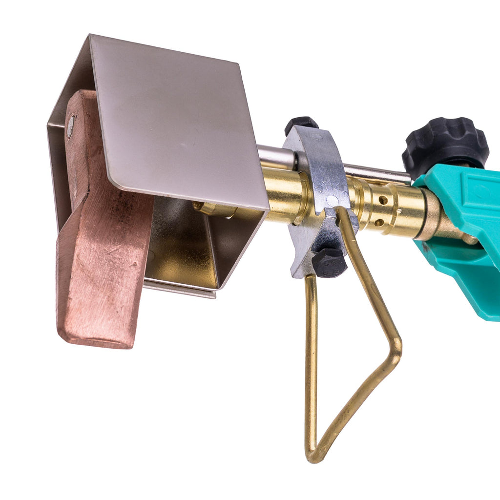 ▶️ Orificiul de iesire al duzei este orientat catre un varf de cupru de 250 g montat pe un mandrin din otel. Extensia varfului poate fi reglata.