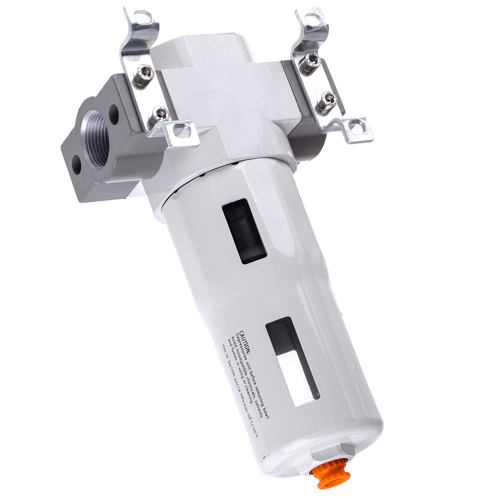 Filtrul nu necesita montaje suplimentare, este tinut pe un niplu sau conector care va fi atasat la compresor. Este prevazut si cu manere care pot fi folosite pentru a-l insuruba pe perete. Scurgerea apei presupune desurubarea supapei situate in partea de jos a filtrului. Este echipat cu un capac metalic al rezervorului.
