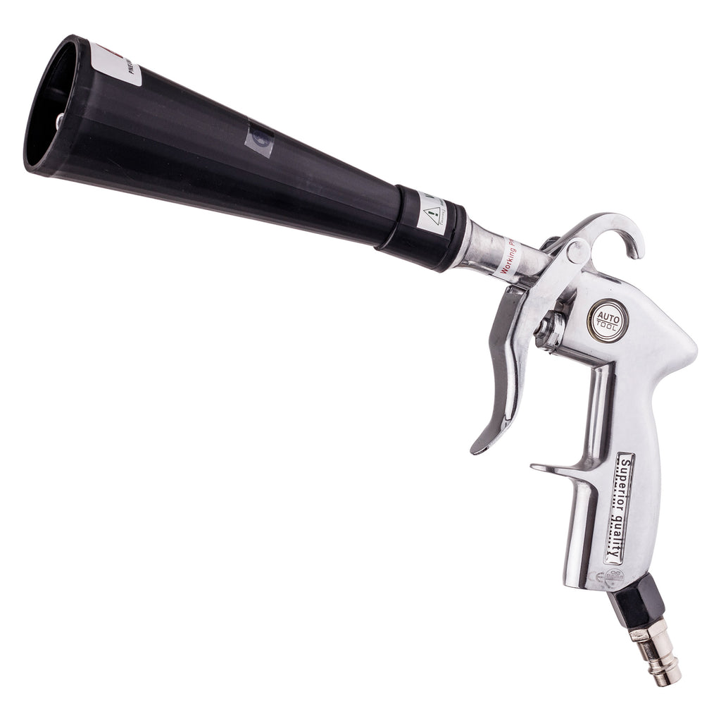 Pistolul de curatare este ideal pentru tapiterie, aer conditionat, piese din plastic, oglinzi auto, scaune, covorase, grile de ventilatie, jante si alte suprafete.