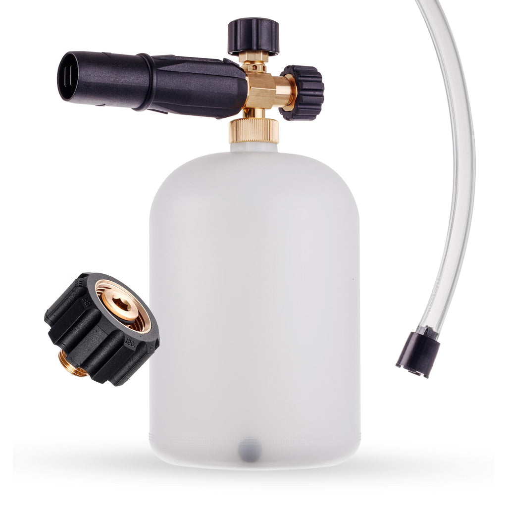 ✅ Filtru pe furtunul - spumatorul este echipat cu un filtru montat pe furtunul care aspira substantele chimice din rezervor. Acesta reprezinta o protectie suplimentara care impiedica aspirarea impuritatilor din recipient, care pot infunda sita de spumare si, astfel, pot reduce calitatea spumei produse.