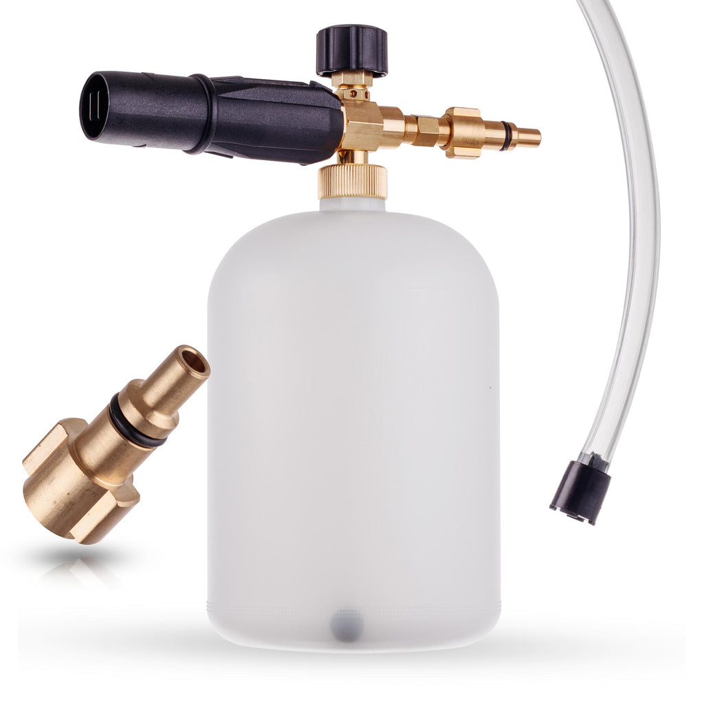 ✅ Filtru pe furtunul - spumatorul este echipat cu un filtru montat pe furtunul care aspira substantele chimice din rezervor. Acesta reprezinta o protectie suplimentara care impiedica aspirarea impuritatilor din recipient, care pot infunda sita de spumare si, astfel, pot reduce calitatea spumei produse.