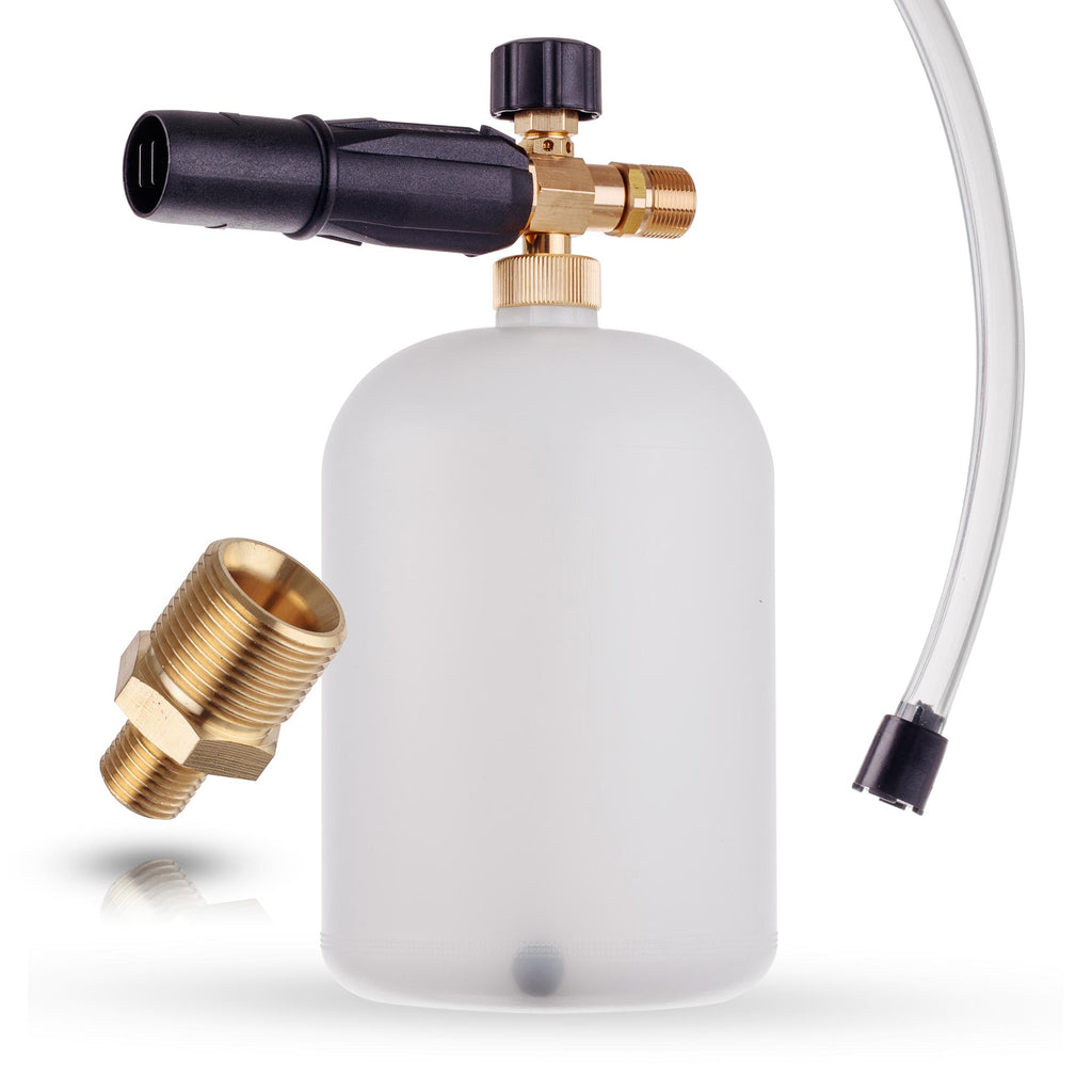 ✅ Filtru pe furtunul - spumatorul este echipat cu un filtru montat pe furtunul care aspira substantele chimice din rezervor. Acesta reprezinta o protectie suplimentara care impiedica aspirarea impuritatilor din recipient, care pot infunda sita de spumare si, astfel, pot reduce calitatea spumei produse.