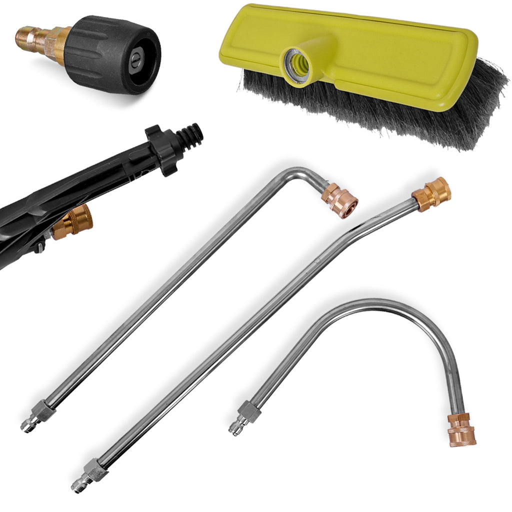 - La capatul lantei se afla un conector pentru duza de presiune (inclusa) si un suport filetat pentru montarea unei perii, permitand indepartarea murdariei persistente.