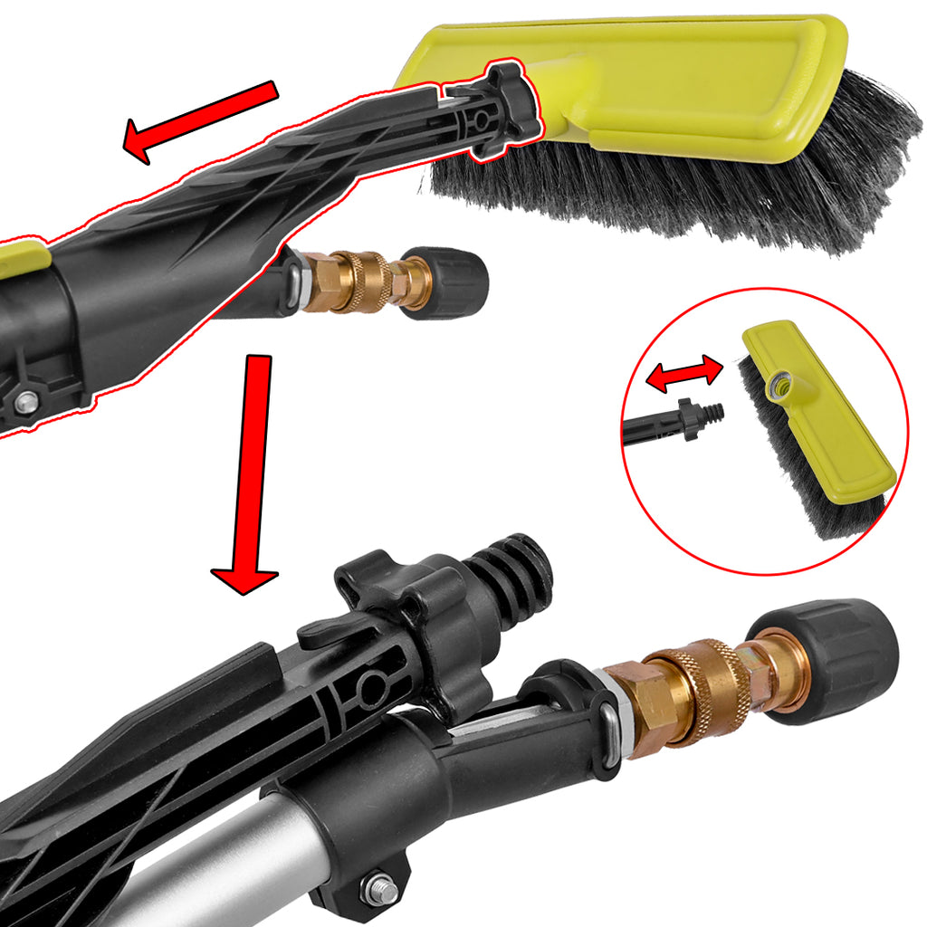- La capatul lantei se afla un conector pentru duza de presiune (inclusa) si un suport filetat pentru montarea unei perii.