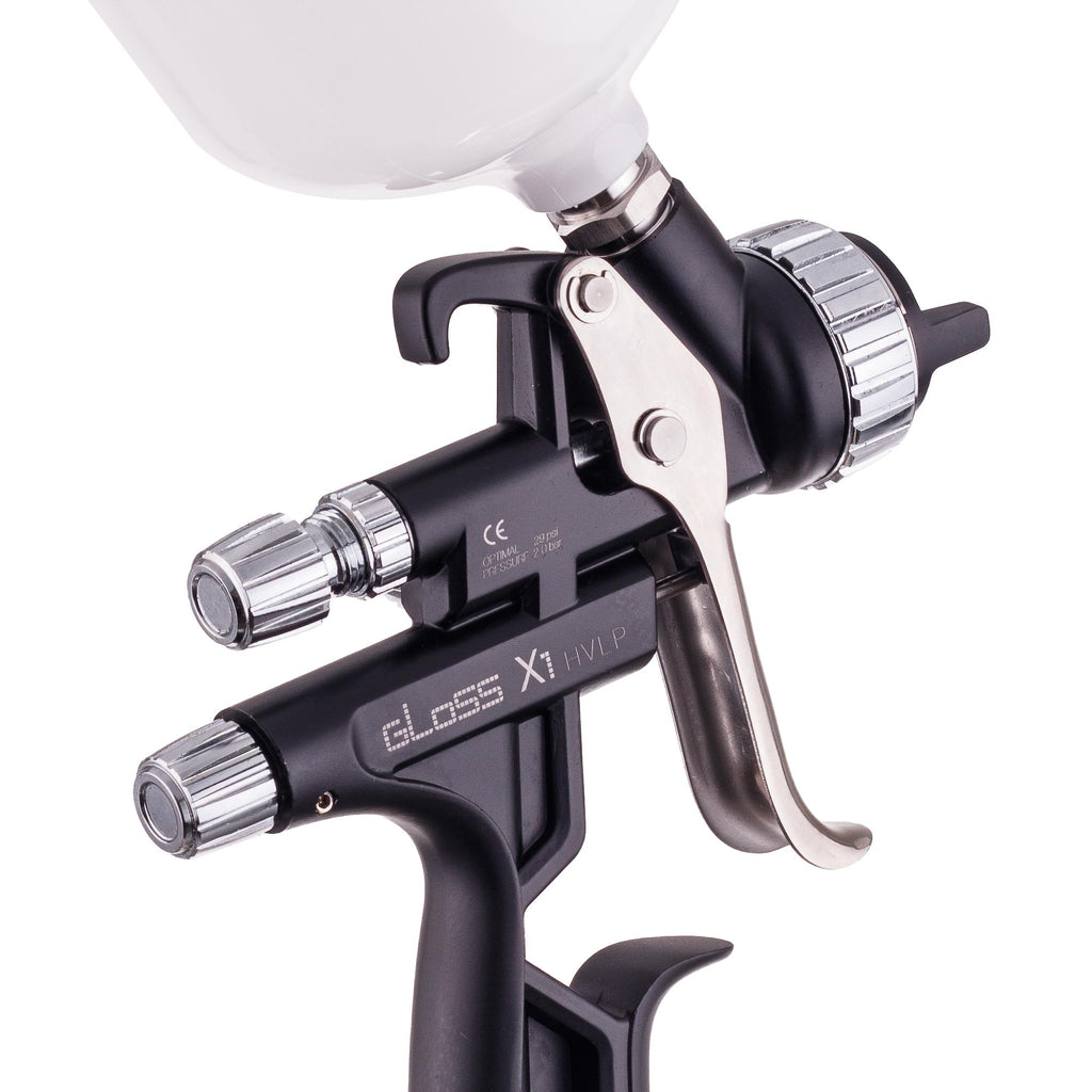 Fabricat utilizand tehnologia revolutionara HVLP (High Volume Low Pressure), care functioneaza la presiune scazuta, reducand semnificativ pierderile de material in timpul vopsirii in comparatie cu pistolul de pulverizare cu tehnologie HP.