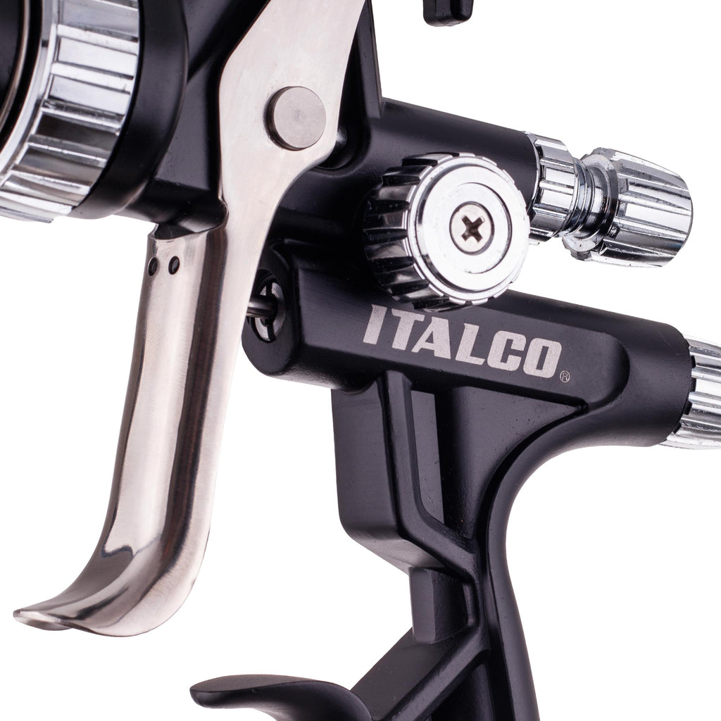Un pistol de pulverizare ITALCO fabricat profesional, conceput pentru utilizare in diverse domenii. Este utilizat in ateliere de caroserie, fabricarea de modele si companii producatoare de scule.
