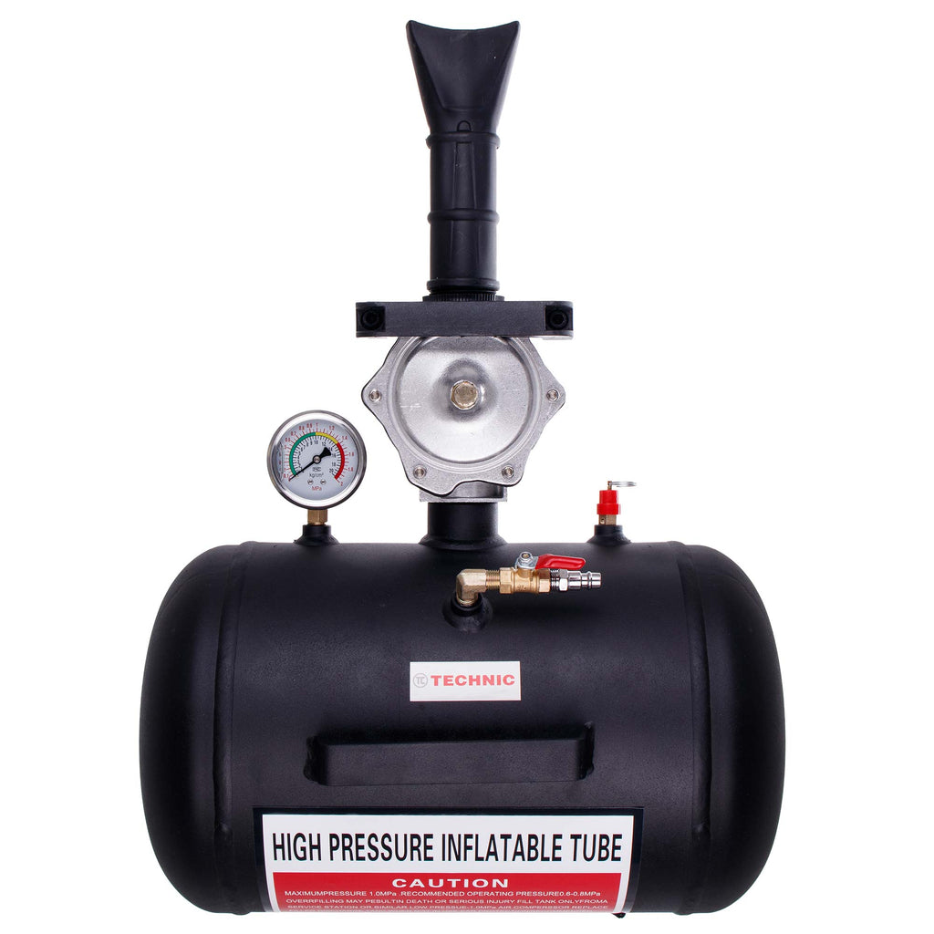 Eliberarea aerului din rezervor face ca talonul anvelopei sa se aseze imediat pe janta. Inflatorul este proiectat pentru masini agricole, camioane, autoturisme si motociclete.
