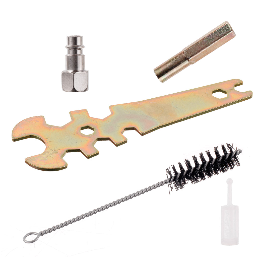 Conectori: Pistolul de pulverizare este echipat cu un filet de 1/4". Setul include si un dop care se potriveste cu conectorul rapid.